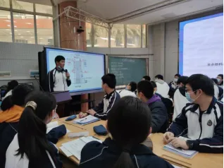 高一(1)班的同学们走上讲台讲解燃料电池的来龙去脉