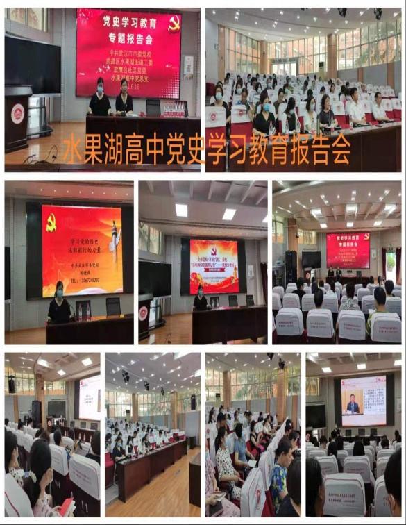 6月16日上午9:00,在湖北省水果湖高级中学一楼多功能厅,由中共武汉市市委党校、武昌区水果湖街道工委、放鹰台社区党委、水果湖高中党总支联合举办了一场内容丰富的党史教育专题报告会。报告会由中共武汉市市委党校党史党建教研部陈晓燕教授主讲,水高全体党员和来自其他不同单位的党员代表参加了党史学习专题报告会,会场气氛严肃认真,大家专心学习并仔细做好笔记。
